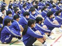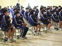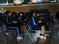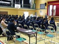3年生も辞校式にはたくさんの生徒が駆けつけ参加しました。転出される先生方からは,思い思いのお言葉を