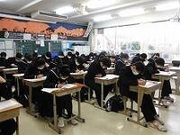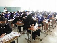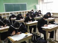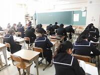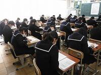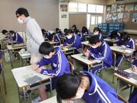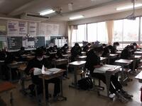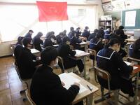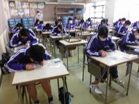 本日は,3年生3回目の実力テストでした。受験と同様に朝の試験前の勉強から,休み時間も試験会場と同じで