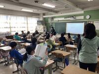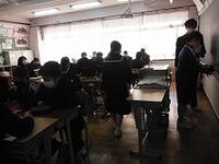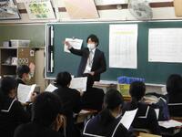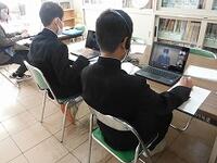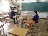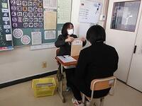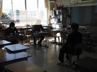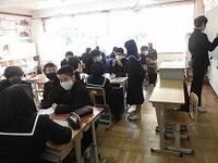 第1音楽室では,3年1組と2年2組が交歓会をしていました。3年生の歌声に2年生は圧倒されていましたが,実際に生の歌声を聴くことは本番がリモートのために良い機会になりそうです。緊張感ある中で練習することで,力をつけて仕上げられるように頑張ってください。