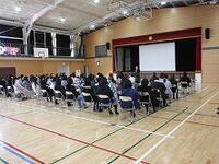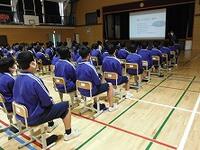午後に進路保護者会が体育館にておこなわれました。多くの3年生保護者の方にご参加いただきありがとうございました。1,2年生の保護者も参加していただきました。校長の話のあと,進路指導主任と学年主任から進路についての具体的な説明がありました。お子様の進路実現に向けて,家庭と学校が連携して最終的には本人が希望する進路先に進めるように,相談しながら丁寧に対応していきますので,不明な点は担任や学年職員にお尋ねください。