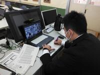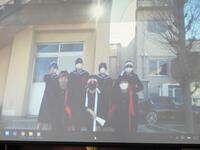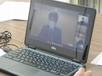 今日は,入学式の予定のお話と校長先生からの挨拶,部活動紹介動画を見て,最後に校舎見学をしながら