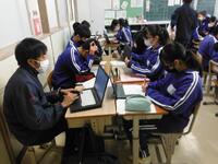 クロームブックを活用して,時刻やルートの確認をしました。旅行業者も来校して一緒に,チェックやアドバイスを
