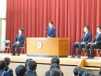 その後に1学期の始業式です。1年の始まりに校長先生からの話,3年代表生徒よりの誓いの言葉,生徒指導主任の話