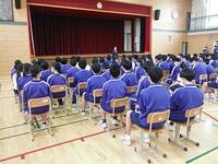 1学年の締めの学年集会がありました。