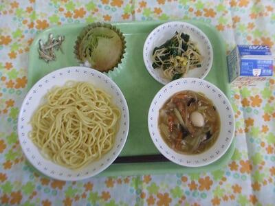 牛乳・チキンカレーライス・ゆで野菜のごまサラダ・デコポン・だいず小魚
