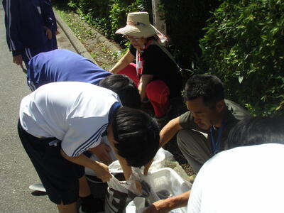サッカー部,柔道部他,ボランティア参加を含め35人が集まりました。