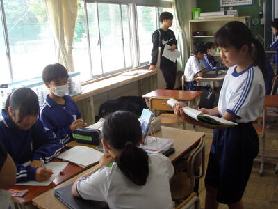 町探検で南部中を訪問し,さまざまな質問をしにきました。