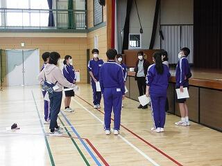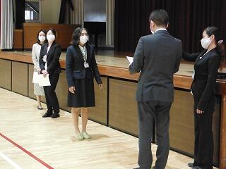 午後の保護者会では,全体会のあと,学級懇談会や3学年の修学旅行の説明,2学年の林間学校の説明もありました。その後はPTA総会もおこなわれ,新旧役員の挨拶や3名の方のPTA功労賞の表彰もありました。長い間,PTA活動へのご協力ありがとうございました。