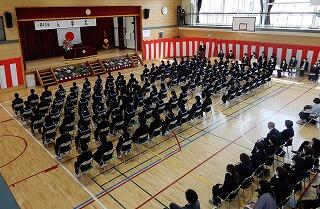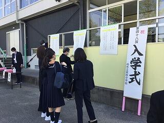 本日,第48回入学式をおこない,新入生104名を迎え入れることができました。2,3年生は教室でのリモートでの参加でした。初々しい制服姿の新入生のご入学を職員一同,心よりお祝い申し上げます。