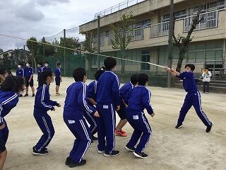 4校時に3年生は,グラウンドで20m往復リレーと長縄飛びのクラス対抗の学年レクをおこない,楽しみながら盛り上がっていました。