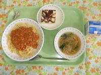 牛乳・スパゲティミートソース・千切り野菜のスープ・マーブルケーキ・小魚