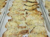 「鮭のパン粉焼き」は、パン粉・粉チーズ・バジル粉・オリーブオイルを合わせ、鮭にのせてオーブンで焼きました。パン粉の香ばしさがおいしい一品です。