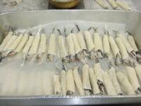 「ししゃものパリパリ揚げ」は、ししゃもに餃子の皮を巻いて油で揚げました。