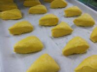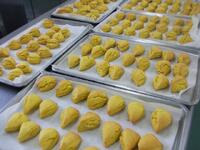 給食では、かぼちゃを使ったスコーンを作りました。かぼちゃの色がきれいに出て、ふっくらと焼き上がりました。