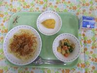 牛乳・スパゲティトマトソース・じゃが芋の味噌サラダ・パンプキンスコーン・だいず小魚