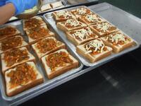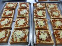 ピザトーストは、たまねぎ、ピーマン、マッシュルームを炒めたピザソースを食パンにのせて、オーブンで焼きました。具沢山でボリュームのある一品です。