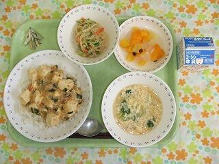 麻婆豆腐丼 投稿日時 : 2023/02/16 南部中学校管理者 2月16日(木) 牛乳 麻婆豆腐丼 バンサンスウ 卵スープ フルーツみつ豆 アーモンド小魚 {{options.likeCount}} {{options.likeCount}}