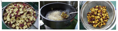 油で揚げたさつま芋に溶かしバターとグラニュー糖を絡めました。