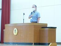 その後,植松校長より今年度の学校経営および1学期学校評価と学校課題などについて説明がありました。