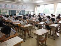 1,2年生は授業が始まりました。1時限は,道徳でした。非常に落ち着いて積極的に授業に参加している姿に安心しました。夏休みを有意義に生活できたのでしょう。