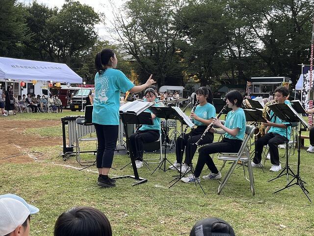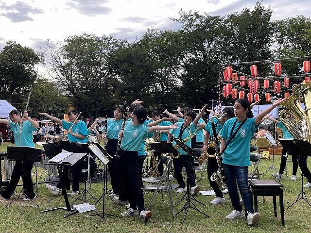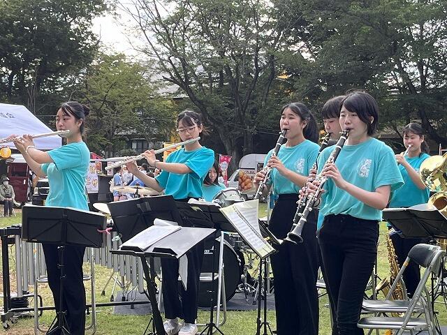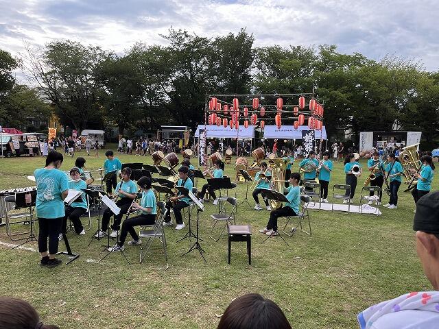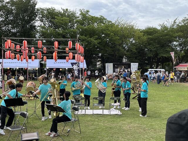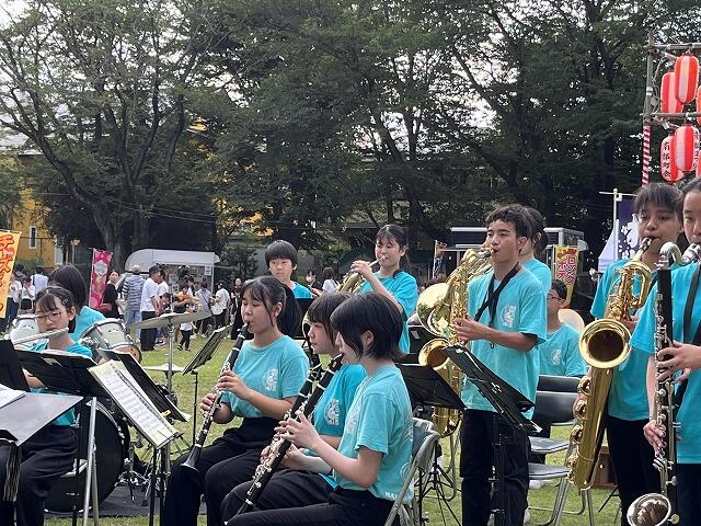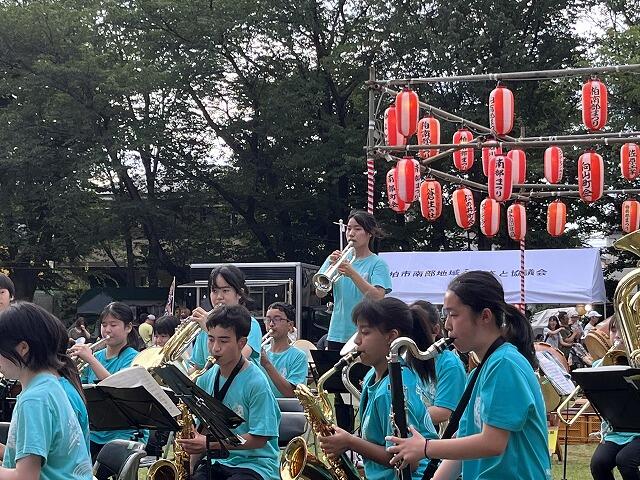 南部まつりに吹奏楽部が出演してきました。数曲演奏して会場を大いに盛り上げました。観覧者からも大きな手拍子があり、南部公園に一体感がうまれました。また、多くの方々の前で1年生がデビューしました。「ゆず」の名曲にのせてきれいな歌声で歌いました。