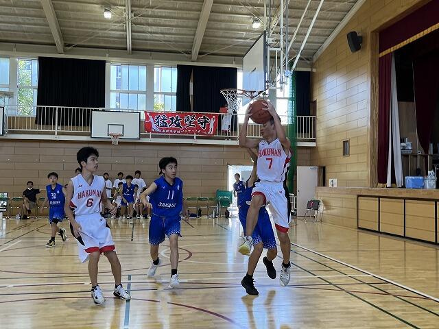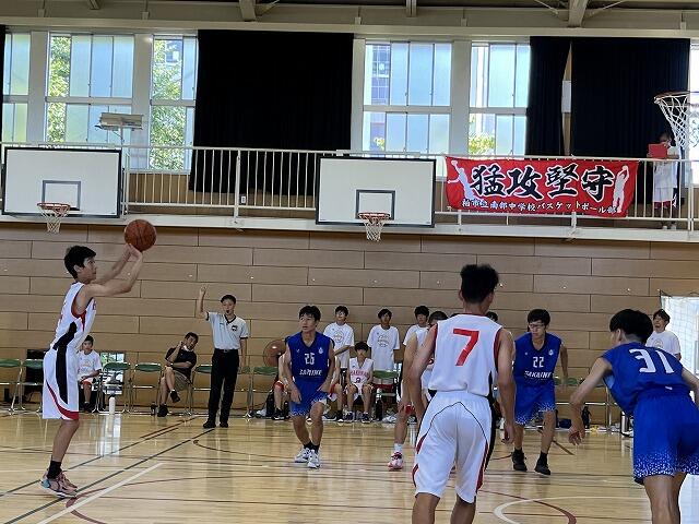 バスケットボールの総合体育大会が行われました。試合は負けてしまいましたが、ベンチに入っている選手を含め、一致団結して戦っていました。3年生は部活動から学んだことはたくさんあったかと思います。学びを今後の人生に役立てて生活していきましょう。これまで本当にお疲れ様でした。