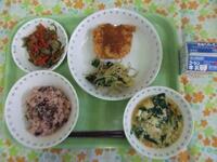牛乳・赤飯・味噌カツ・辛子和え・五目きんぴら・かきたま汁