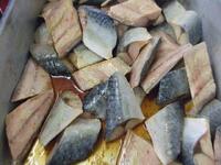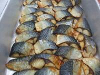 今日の給食「鯖のガーリック焼き」は、にんにくと醤油を合わせたタレに漬け込み、オーブンで焼きました。