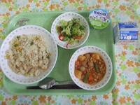 牛乳・チキンピラフ・ブロッコリーサラダ・ミネストローネ・ヨーグルト・小魚