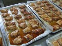 今日の給食「鶏肉のマーマレード焼き」は、鶏肉に醤油、ワイン、オレンジマーマレードを合わせたタレに漬け込み、オーブンで焼きました。マーマレードを加えることでお肉が柔らかくなり、甘みと照りが出ます。