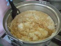 今日の給食「いわし御飯」は、揚げたいわしに醤油と砂糖を合わせたタレに絡め、ご飯に混ぜました。いわしの小骨も気にならず、カルシウムもしっかり摂れます。甘辛いタレがよく染みて食が進みます。