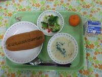 牛乳・チリドック・ブロッコリーサラダ・コーンポタージュ・冷凍みかん・アーモンド小魚