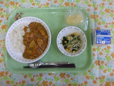 牛乳・ポークカレーライス・海藻サラダ・冷凍りんご・だいず小魚