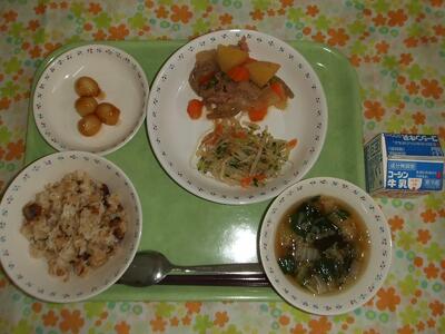 秋刀魚御飯・肉じゃが・春雨サラダ・わかめスープ・月見団子