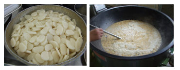 今日は「中秋の名月」十五夜のお月見です。給食では、みたらしあんに絡めた月見団子を作りました。