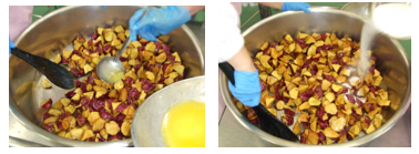 今日は、給食室手作りの「マーブルケーキ」をご紹介します。