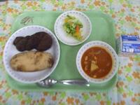 牛乳・チキンカレーライス・ゆで野菜のごまサラダ・ナタデココ入りグレープゼリー・だいず小魚