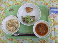 牛乳・ツナピラフ・鶏肉の照り焼き・キャベツとしめじのサラダ・ミネストローネ・だいず小魚