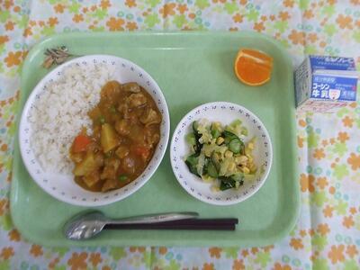 牛乳・ポークカレーライス・海藻サラダ・せとか・アーモンド小魚