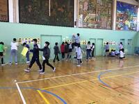 2/28(火)6年生の異学年交流と西原中学校体験入学,5年生体育館装飾