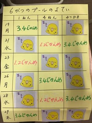 水泳学習にむけての掲示物です。来週、水泳学習の仕方を学びます。安全に楽しみながら学んでいけるようにしていきます。