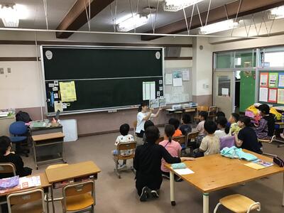 1年生と6年生でなかよし遊びをしました。6年生中心に楽しく活動することができました。
