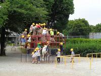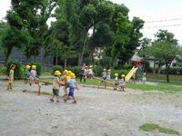 公園では,クラスごと遊具で遊んだり,公園のルールを確認しました。