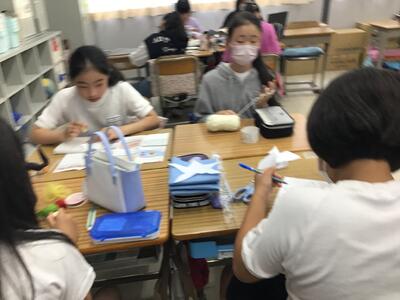 キャンドル製作体験に挑戦しました。個性的な作品にそれぞれ仕上げていました。