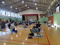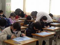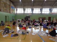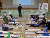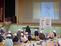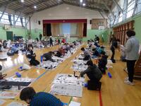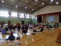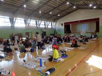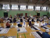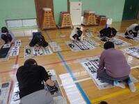 書き初め教室を体育館で3年生から6年生まで実施しました。