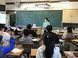 管楽器の鑑賞の授業でした。ホルンとトランペットの音色の違いや楽器の特徴を実際に楽器に触れ,重さや形状を確認しながら学びを深めました。間近で見たり初めて触ったりと、発見が多かったようです。