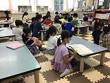校長先生からは50周年記念式典にちなんで『おめでたい』という『たい』のお話。「五感を使って生活し,心の中に様々な種類の『たい』を泳がせてくださいね。」と仰っていました。『知らせたい』『教えたい』『知りたい』『調べたい』『やってみたい』『作ってみたい』などさまざまな『たい』がいます。これを難しい言葉で『主体的』というよ。とも話され,どの子も聞き入るように耳を傾けていました。途中には詩人”まどみちお”さんの『たい』という詩も朗読してくださり,校長先生の朝の授業はとても楽しかったようです。