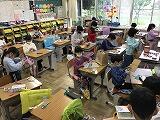 2年生の教室で外国語活動の授業がありました。テーマは『Number』!1~10の数を英語で元気よく発音する姿が見られました。外国語授業支援員の先生の発音をよく聞き,楽しそうに言語に触れる姿は素敵でした。また,楽しめるといいですね。