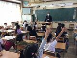 「中学校は何組までありますか?」「一番人気の部活はなんですか?」「教科は何種類ありますか?」「朝はどうやって始まりますか?」「先生は何人いますか?」「男の先生と女の先生はどちらが多いですか?」「校長先生はなぜ,校長先生になったのですか?」など,笑いを誘うような質問まで飛び出しながらも,にこにこ笑顔で全ての質問に答えてくださいました。熱心にメモを取る西原っ子もいました。また,【自分自身の力を最大限発揮するために,人の話を黙って集中して聞き,心を鍛えること】【人と人との出会いを大切にするために挨拶をしっかりとすること】をお話くださいました。