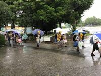 登校時間にものすごい雨が降ってしまいましたが,西原っ子たちは大きな荷物を抱え,43日ぶりに元気に登校してきてくれました。